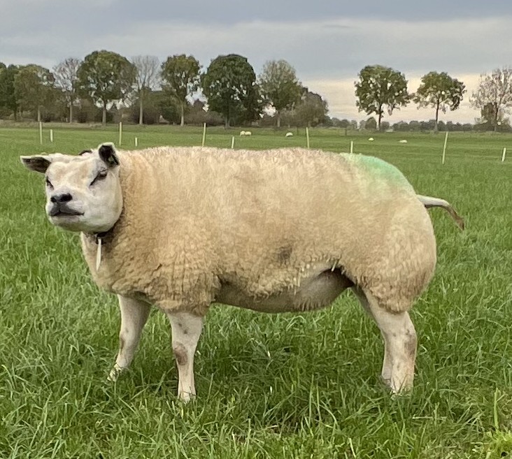 Najaar 2023 is zei gedekt door ram 2919 van Capellegoed en heeft in het voorjaar van 2024 -2 prachtige ooilammeren geworpen die beide nog op ons bedrijf aanwezig zijn.